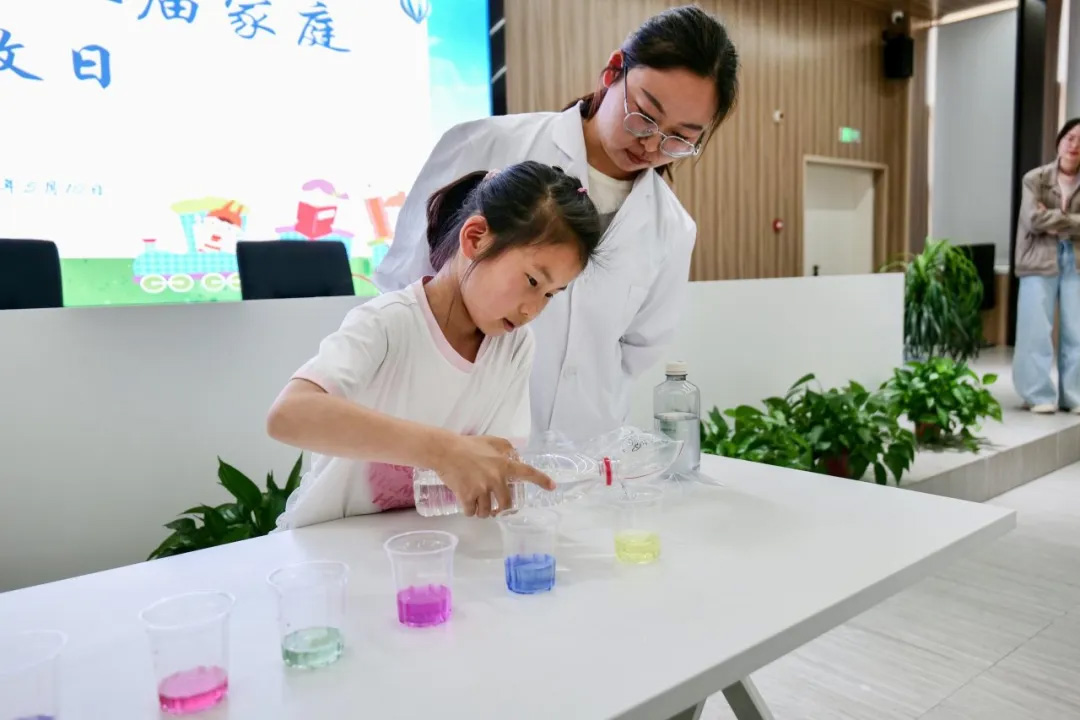 在智慧小课堂,研究院科研工程师带来神奇的科学实验,色彩斑斓的实验变化让孩子们目不转睛。通过实例讲解和互动问答,让孩子们对化学有了初步的了解和认识,激发他们的学习兴趣和探索欲望。
