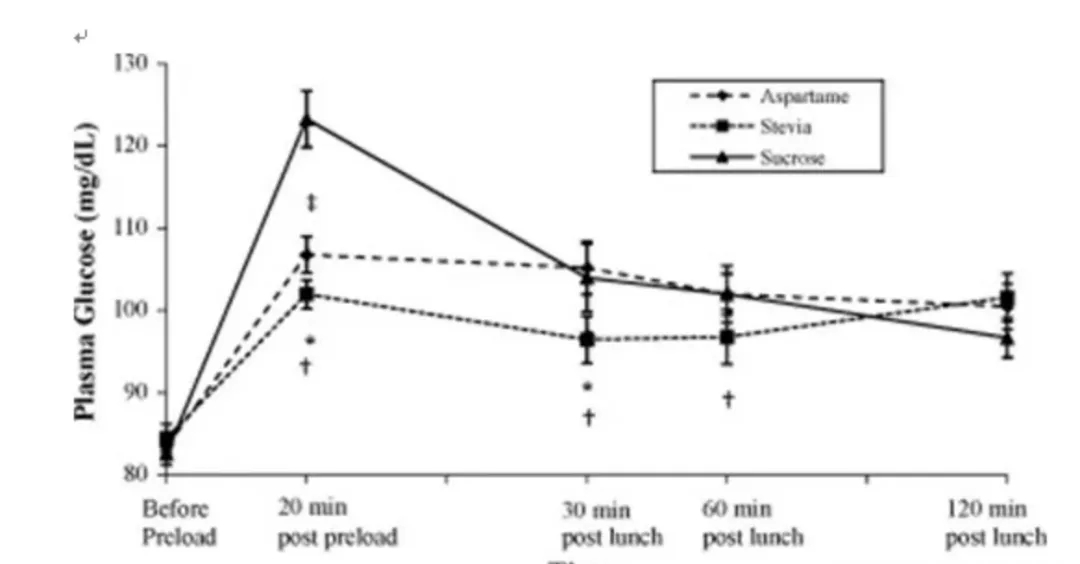 反而是一些原始实验,证实了同样的样本之下,食用人工、天然代糖和蔗糖,在当天的食欲和当日摄入卡路里上,基本是没有太大区别的。
