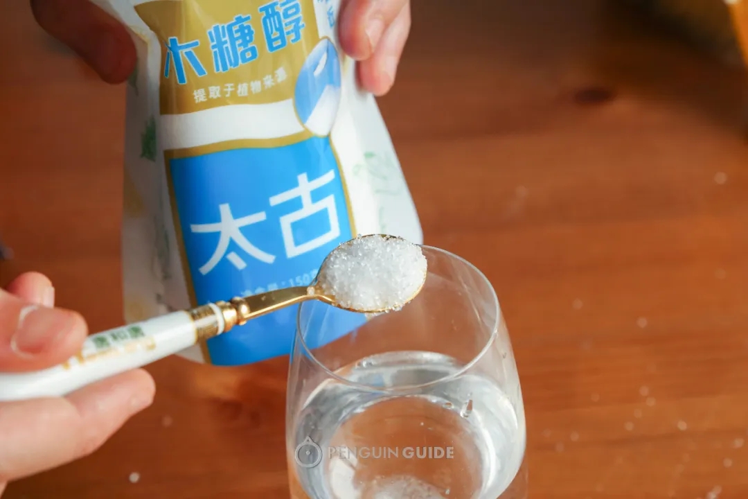 我们将木糖醇和白砂糖调成同等甜度的糖水(10g/100ml),进行盲品。