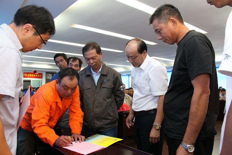 项目建设领导小组常务副组长、设备、电器仪表安装负责人及外协土建、安装、防腐、保温等施工方代表相继作了表态发言,并分别签订了“军令状”。