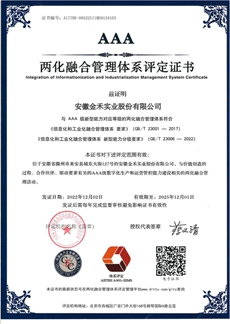 近日,公司收到两化融合管理体系—AAA(领域级)认证证书。根据GB/T 23006-2022《信息化和工业化融合管理体系新型能力分级要求》,新型能力共为五个等级,分别为A(规范级)、AA(场景级)、AAA(领域级)、AAAA(平台级)、AAAAA(生态级),其中 AAA(领域级)为目前开放申请的最高级别。此证书的获得,标志着公司在推进信息化和工业化深度融合获得权威认可。