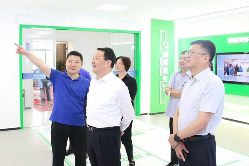 在企业展示厅,董事长杨乐向彭寿一行详细介绍了企业发展历程、技术创新、新能源及产业链打造等情况。