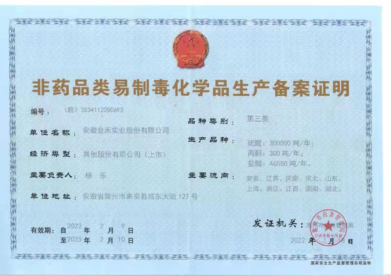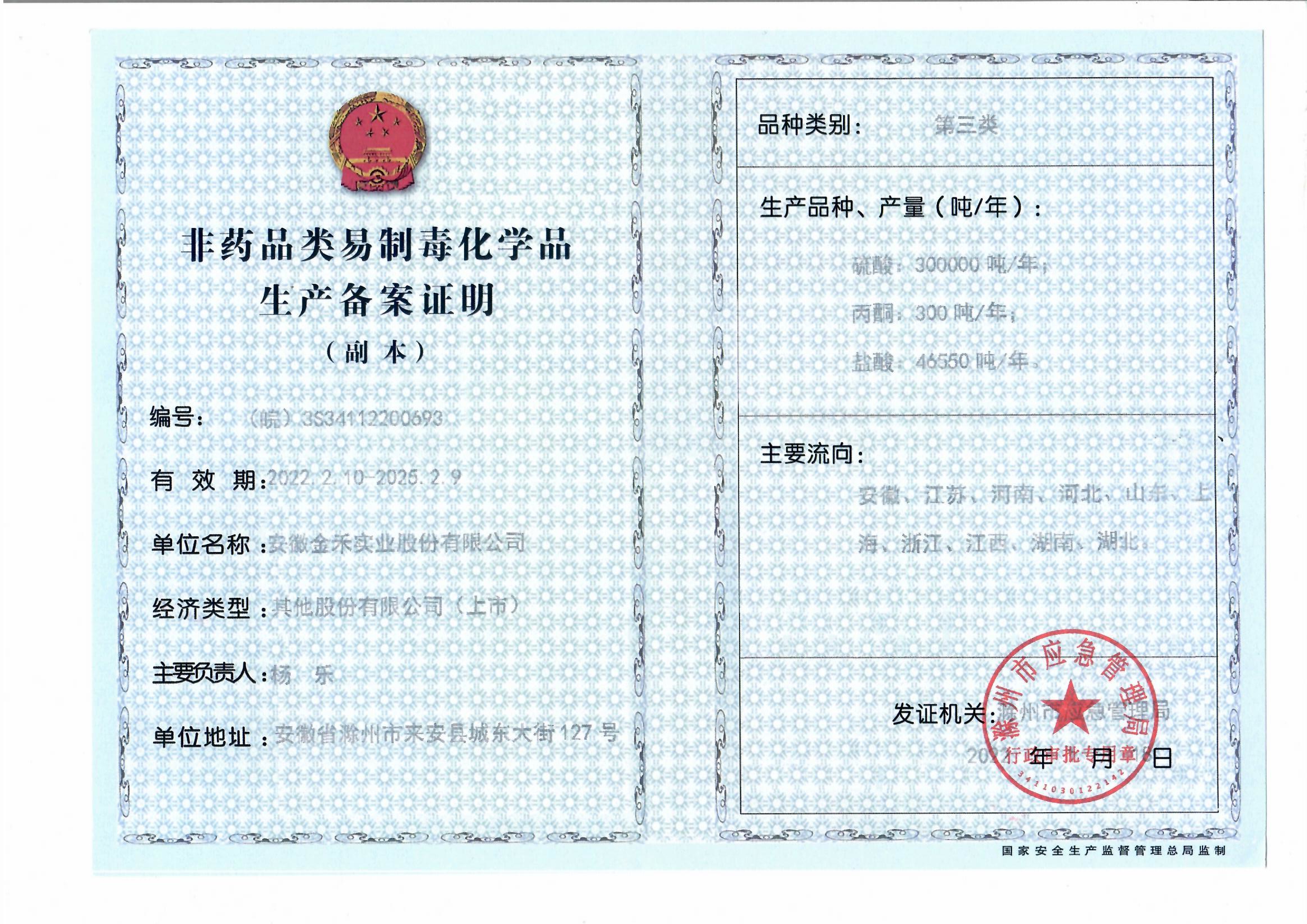 非药品类易制毒化学品生产备案证明