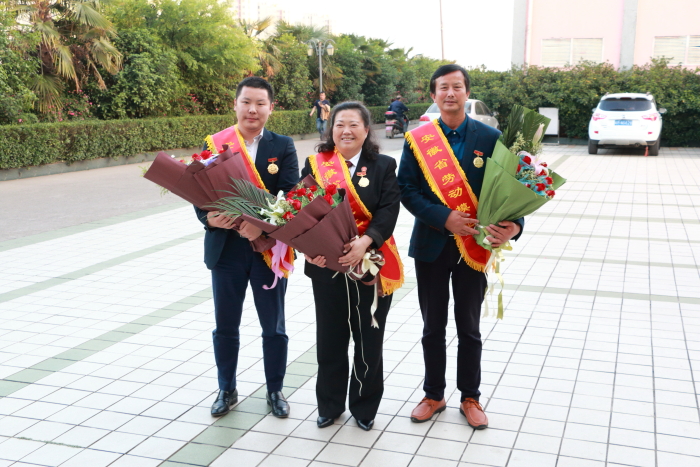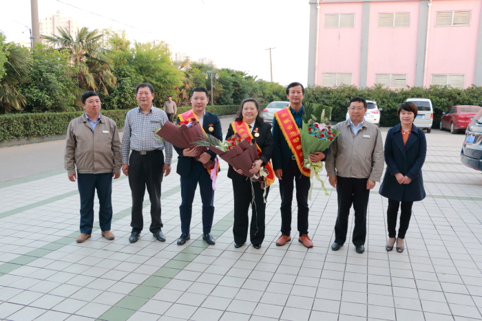 公司综合楼下,股份公司总经理夏家信、党委书记戴世林及一、二、三、四、五、六公司、公用工程公司经理、总工程师、监事会主席、安环总监、信息总监、工会主席、行政部负责人列队欢迎,并向省劳模、副董事长杨乐等三人献花,表达公司对劳模的崇敬之情。此次,我县共有两人被表彰为省劳动模范、一人被表彰为省先进工作者。